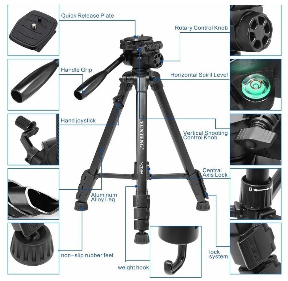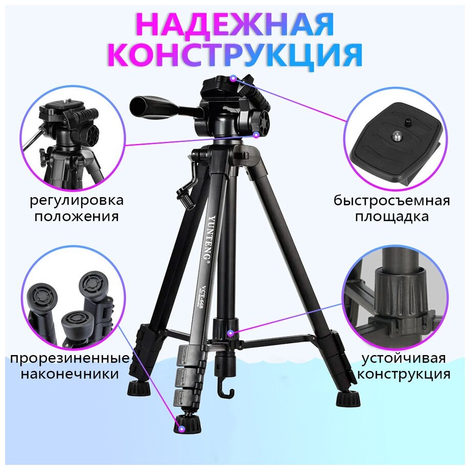 Штатив тренога напольный Yunteng VCT-668 для телефона, фотоаппарата, камеры