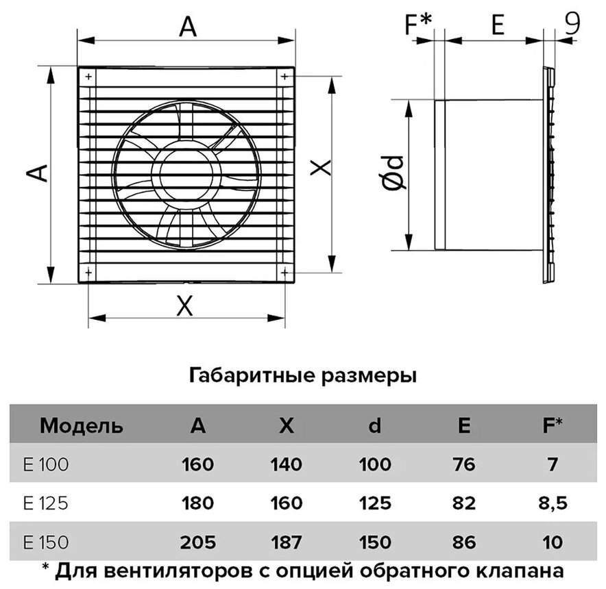 Вентилятор осевой c антимоскитной сеткой и обратным клапаном E 150 S C, D 150 мм