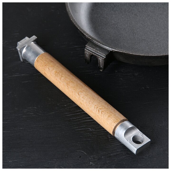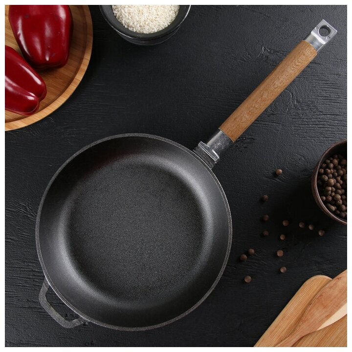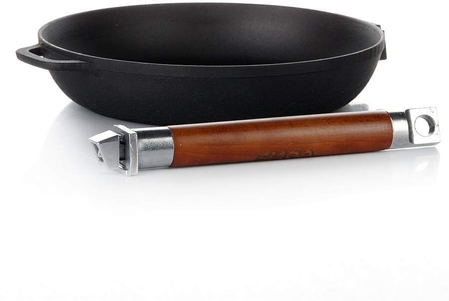 Сковорода чугун, 20 см, Биол, 0120, съемная ручка, с деревянной ручкой, индукция