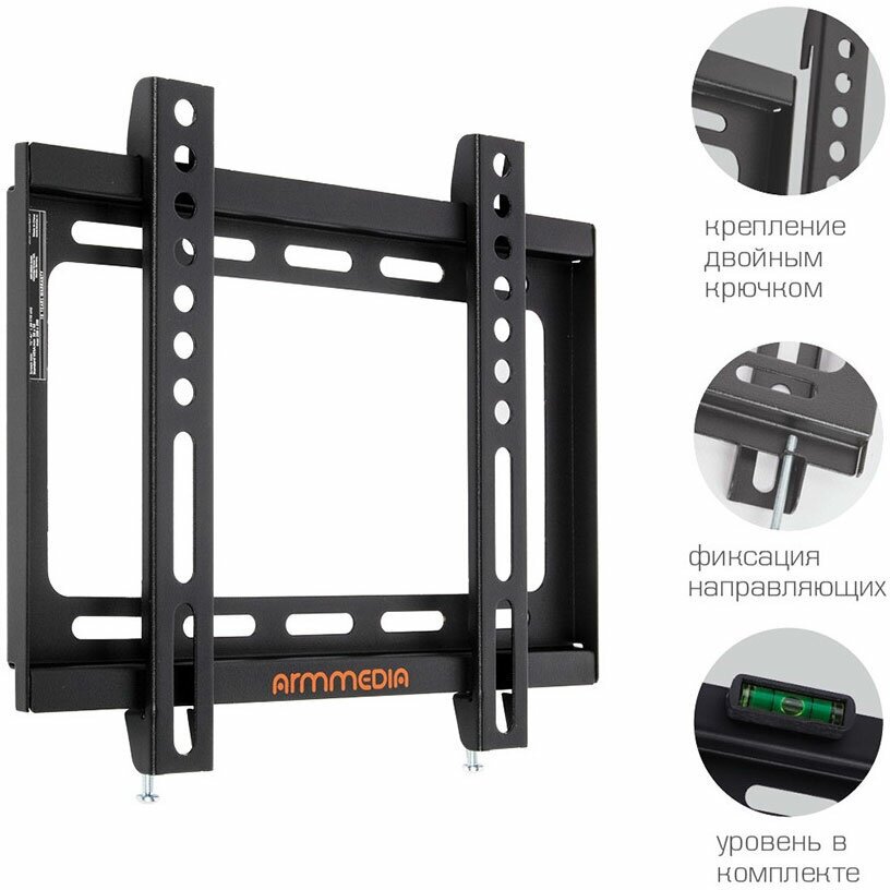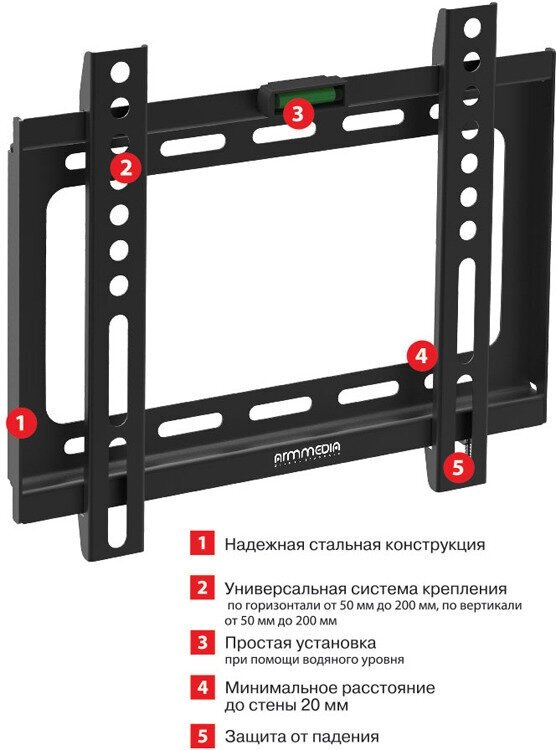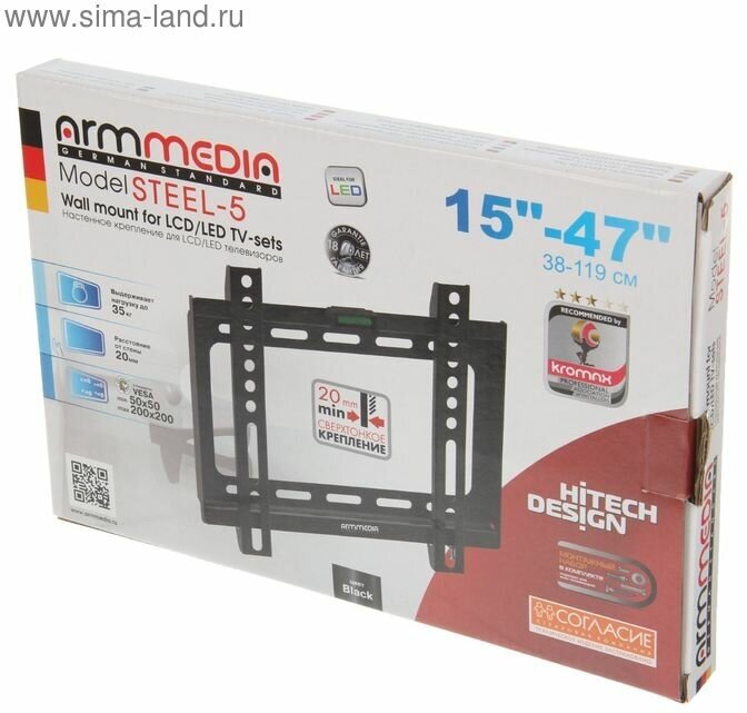 Кронштейн ARM Media STEEL-5, для ТВ, фиксированный, 15-47", 20 мм от стены, черный ARM MEDIA 2644827 .