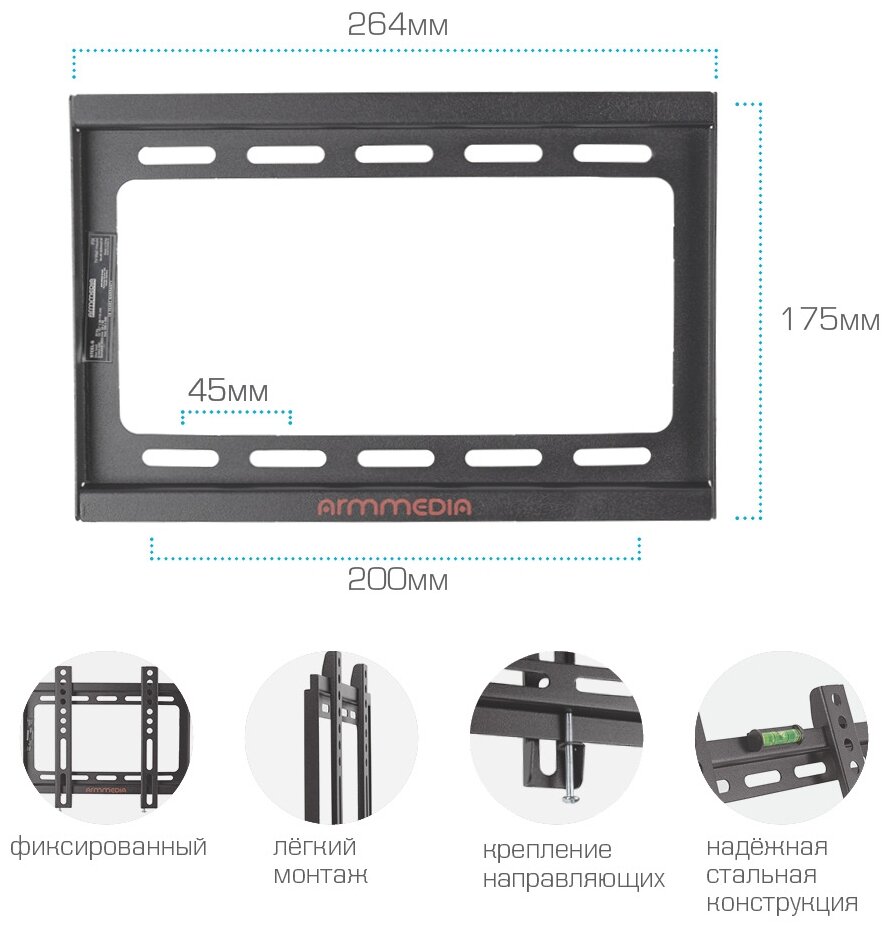 Кронштейн для телевизора настенный фиксированный Arm Media STEEL-5 / до 47 дюймов / vesa 200x200
