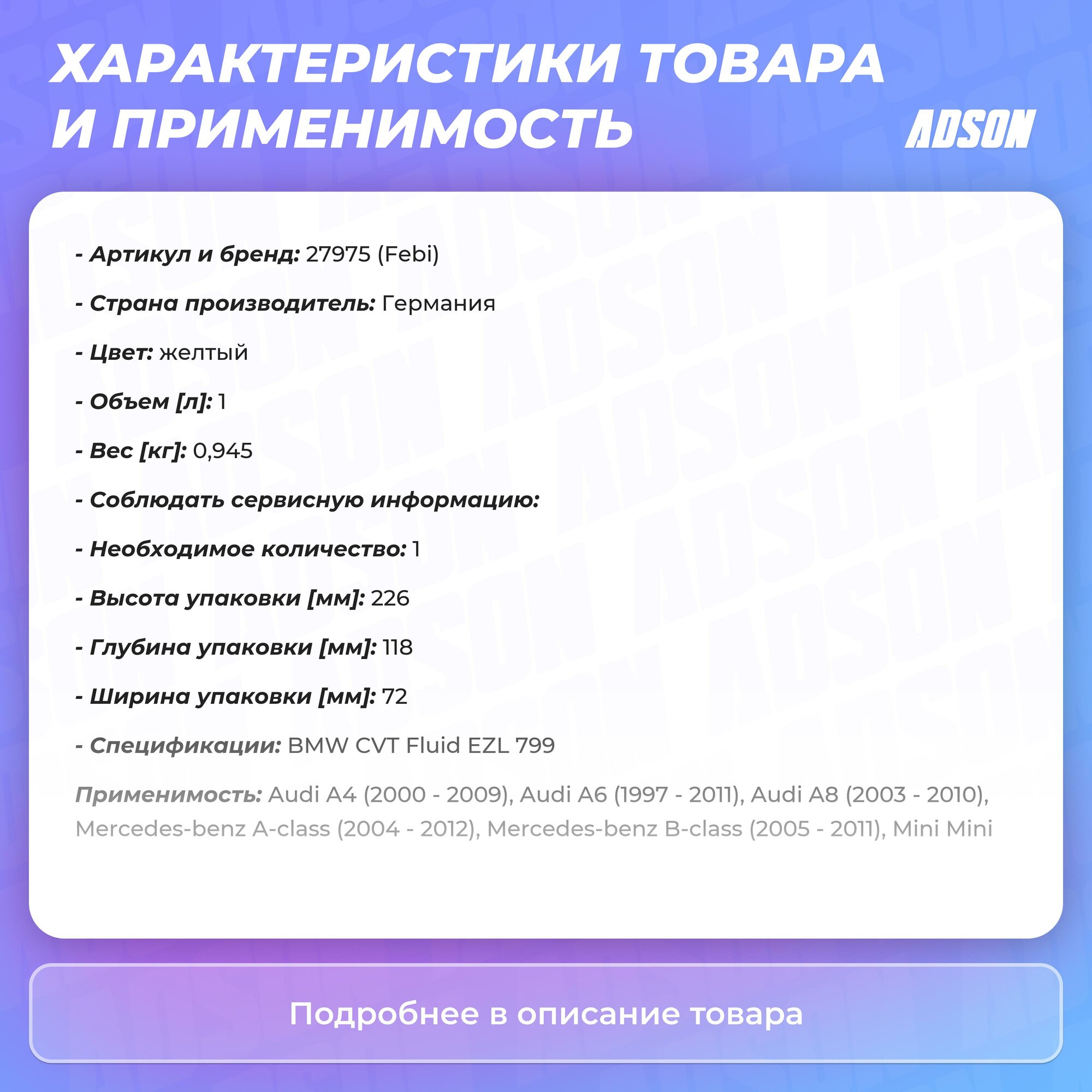 Febi / 27975 / Масло трансмиссионное CVT, 1л (цвет жёлтый)
