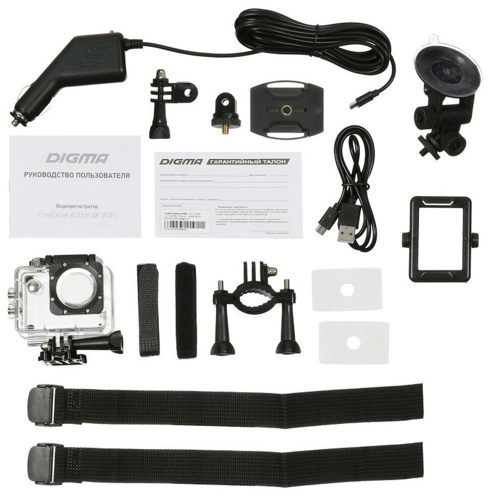 Видеорегистратор Digma FreeDrive Action 4K WiFi, черный, 8Mpix 2160x3840 2160p 150гр. Allwinner V3