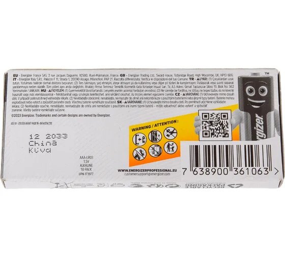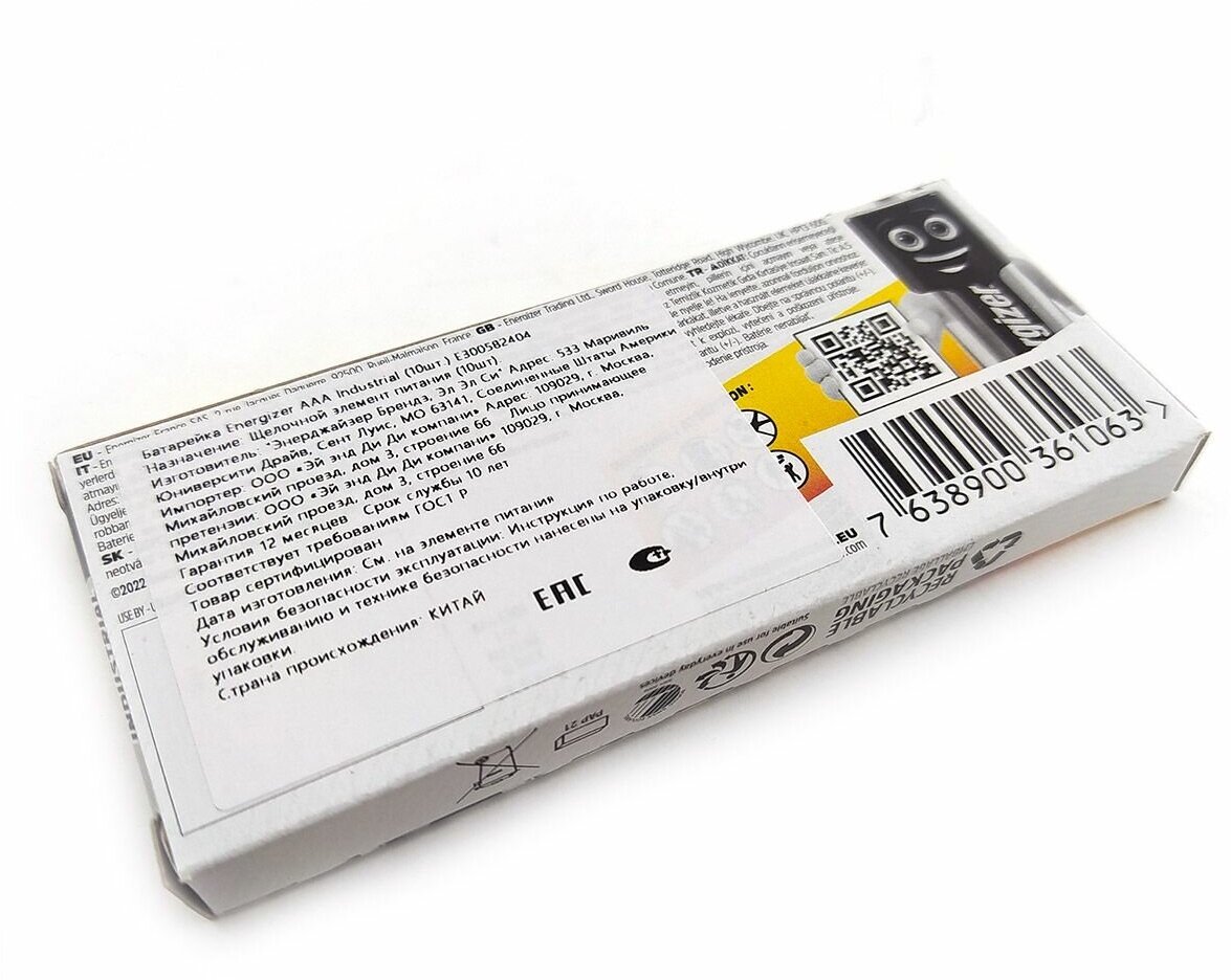 Батарейки ENERGIZER Industrial AAA LR03, мизинчиковые, коробка 10 шт