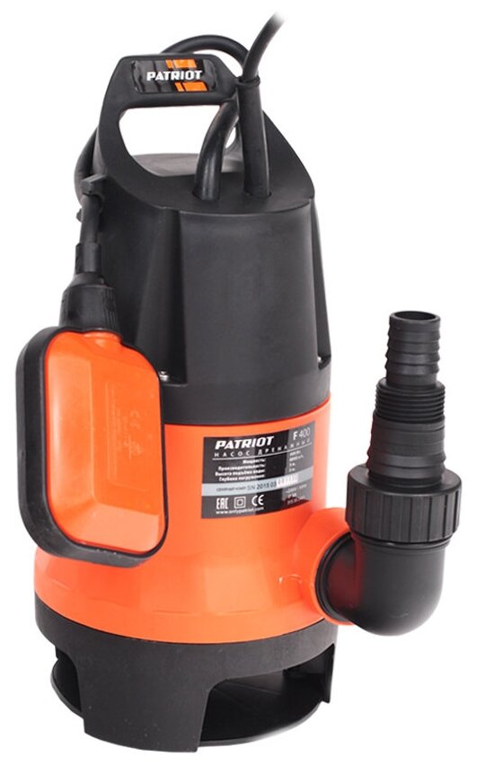 Насос дренажный для грязной воды Patriot F 400, 400 Вт, 8000 л/ч