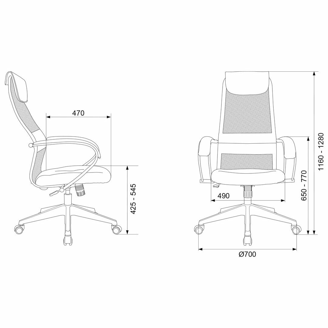 Кресло компьютерное Бюрократ CH-607, стул офисный на колесах, высокой спинкой из сетки, с подлокотниками, ткань