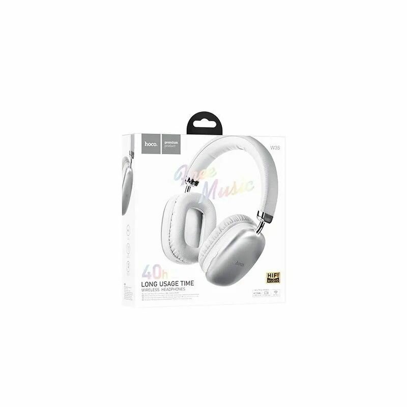 Беспроводные накладные наушники Hoco W35, Bluetooth 5.3, 40 часов работы, AUX, TF, Серебристый + Белый