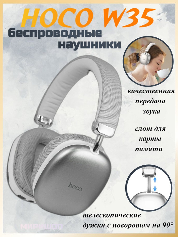 Наушники HOCO W35 полноразмерные, беспроводные, BT 5.3, серебристый