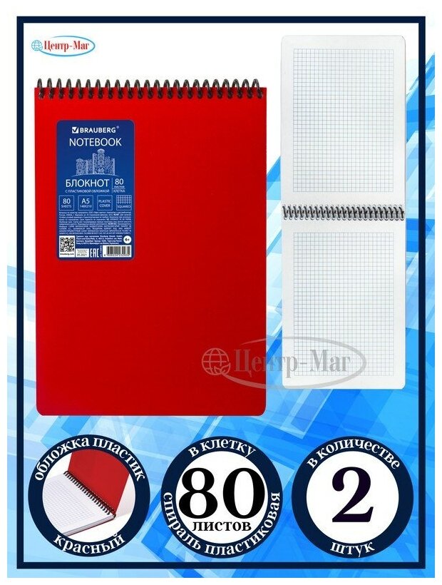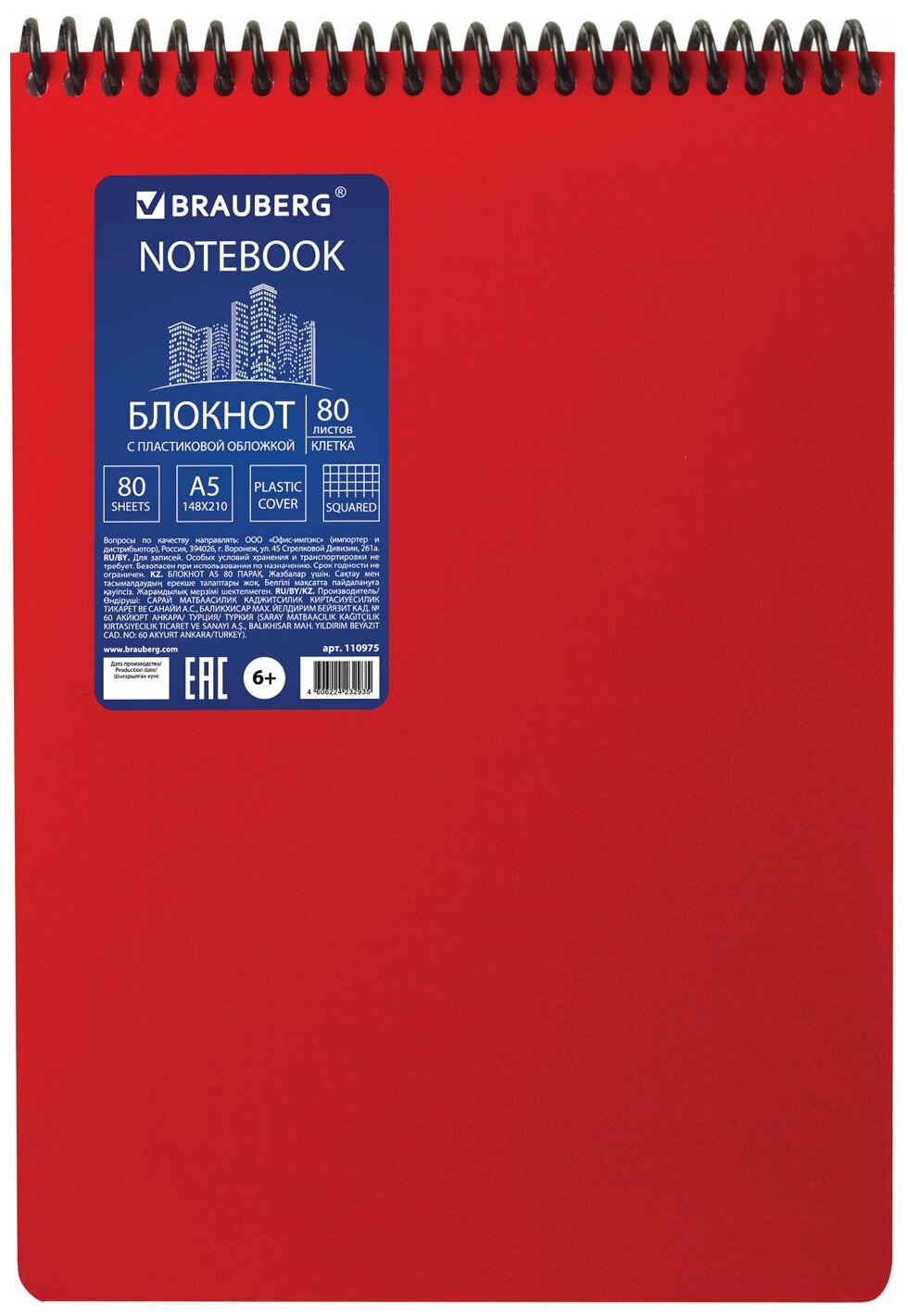 Kyiv Style Блокнот 80 л. А5 клетка Metropolis красный 110975 BRAUBERG блокноты в Курчатов