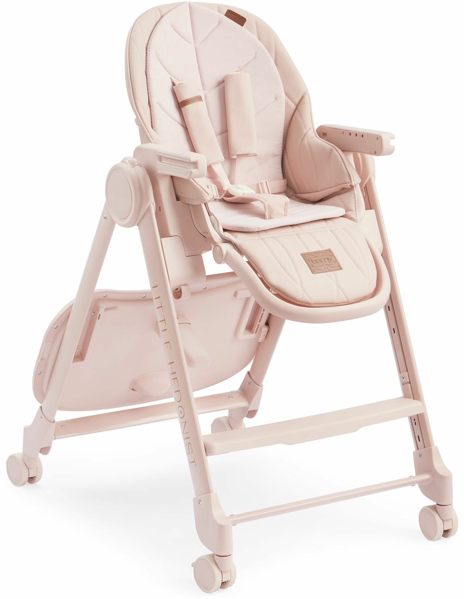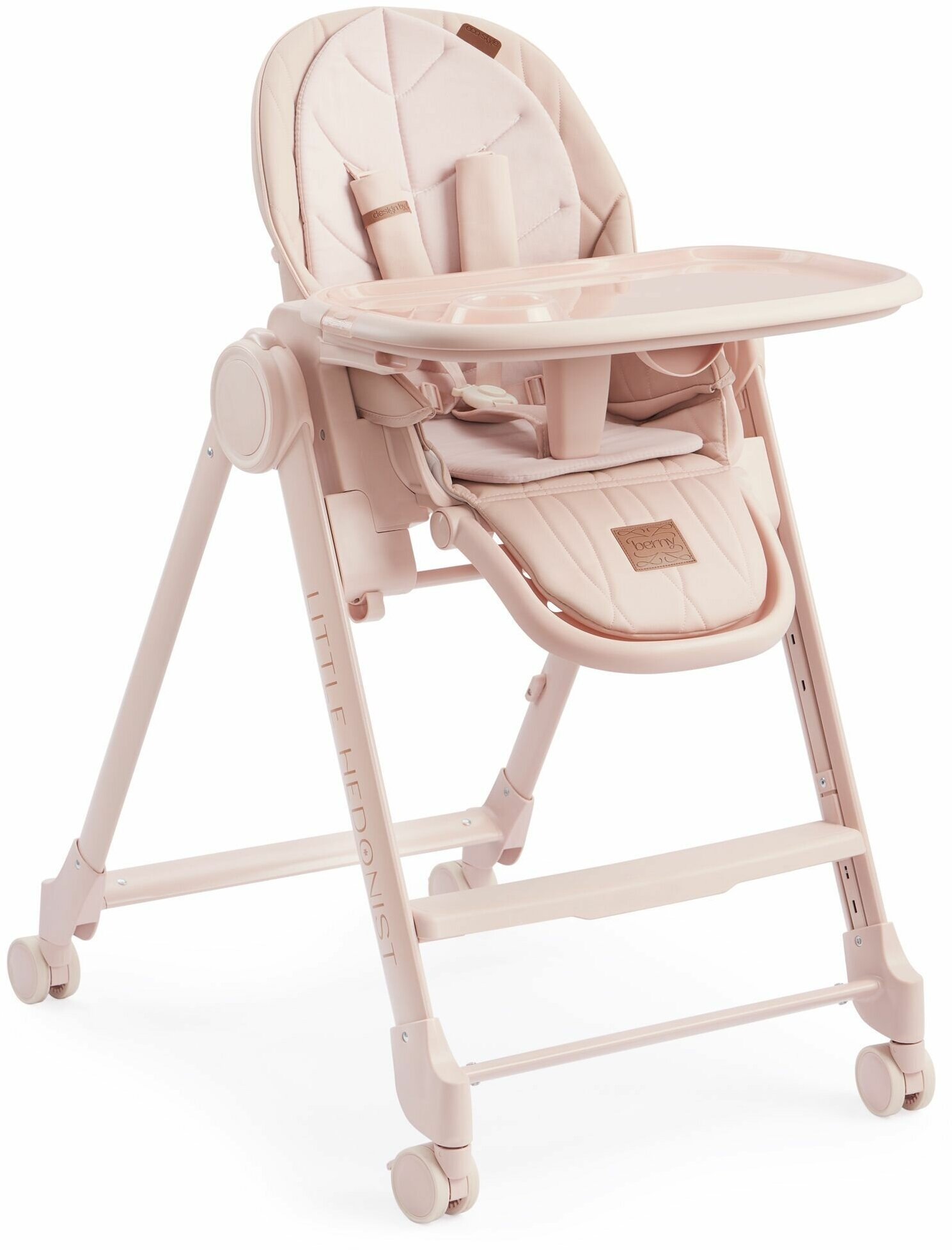 Стульчик для кормления Happy Baby Berny Lux до 25 кг, шезлонг, 4 повротных колеса, розовый
