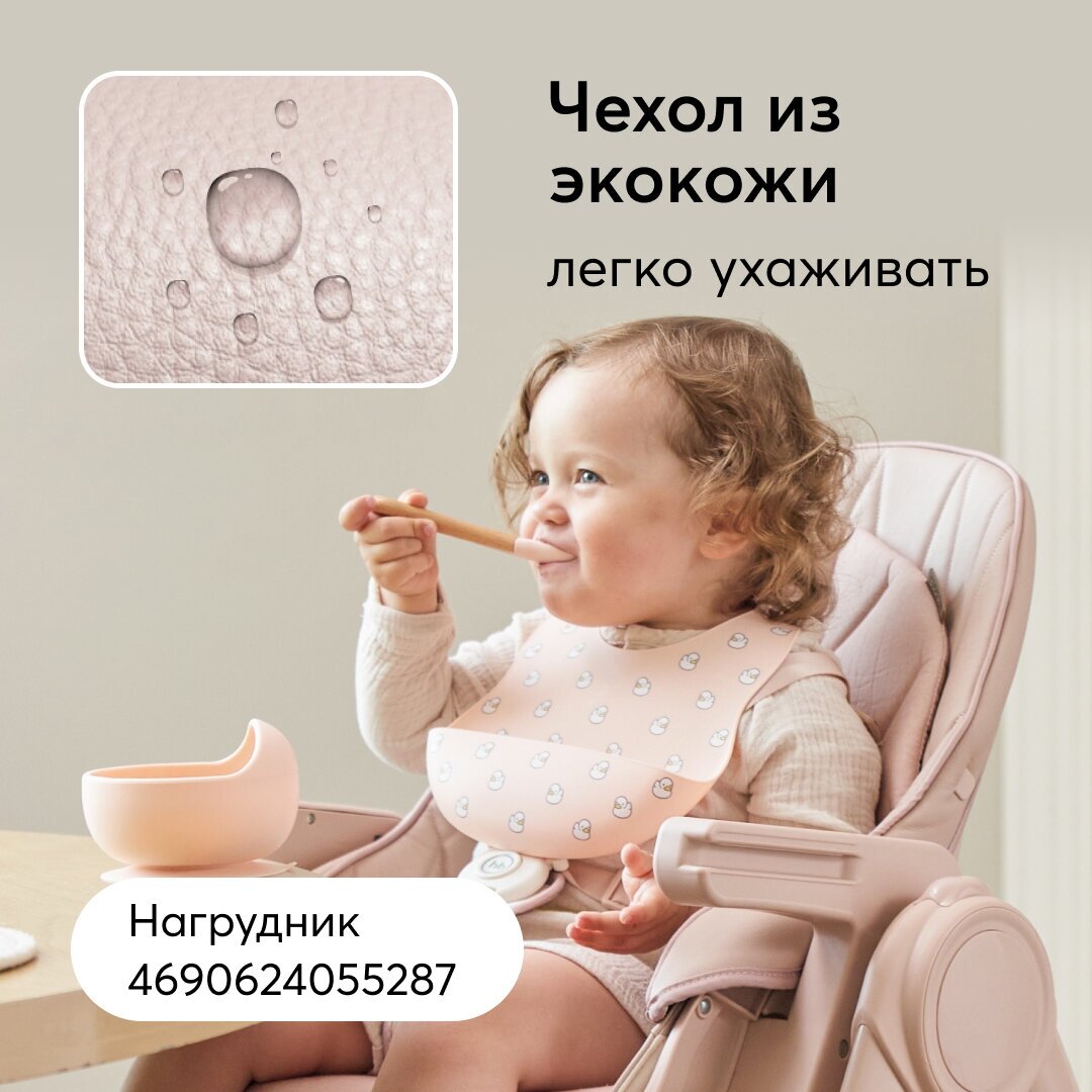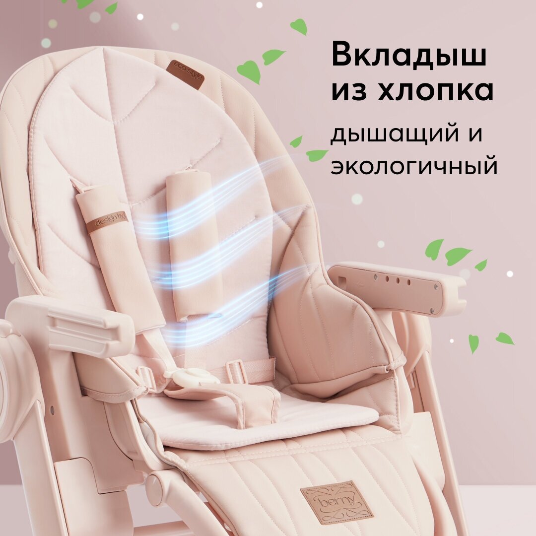 Стульчик для кормления Happy Baby Berny Lux, до 25 кг, шезлонг, экокожа, розовый