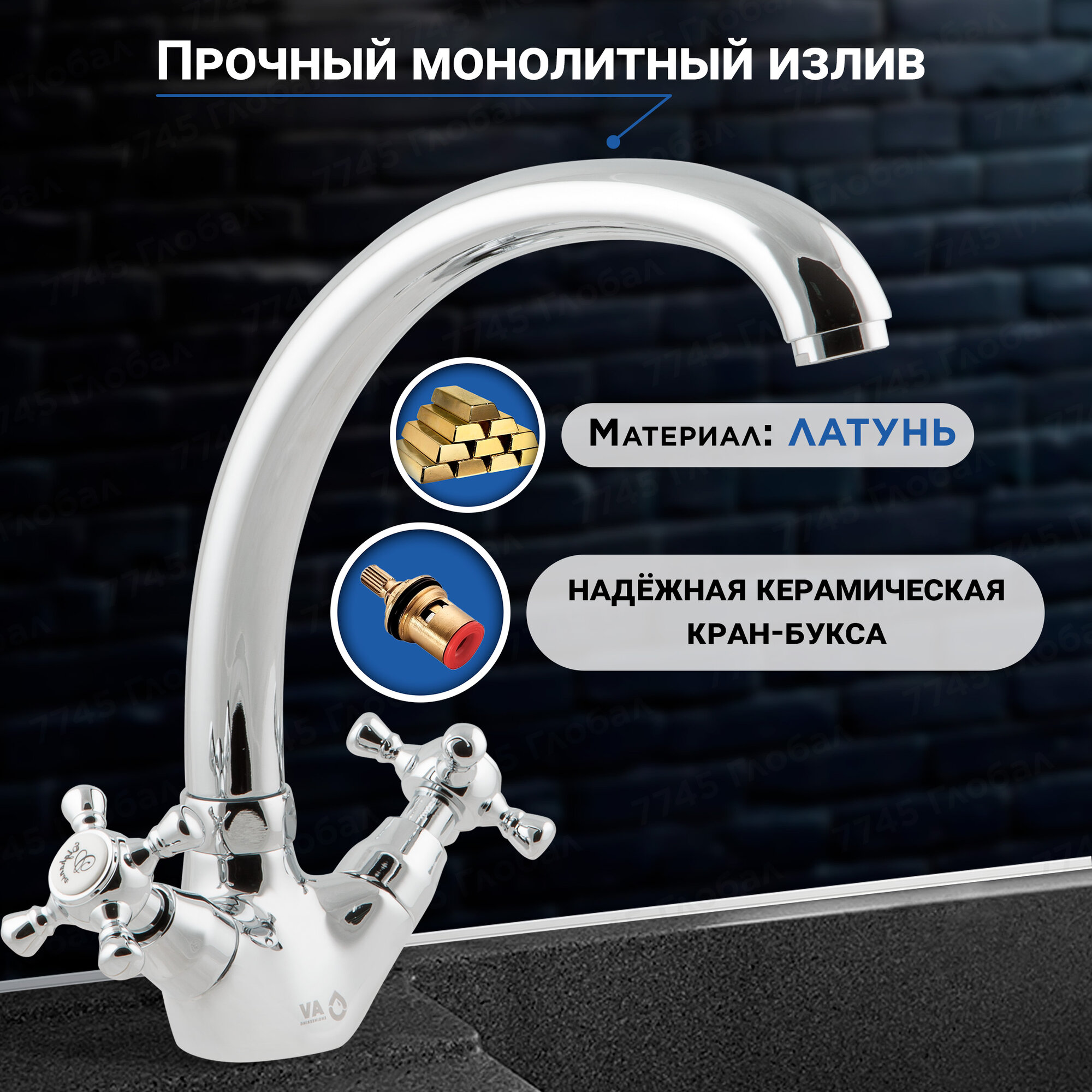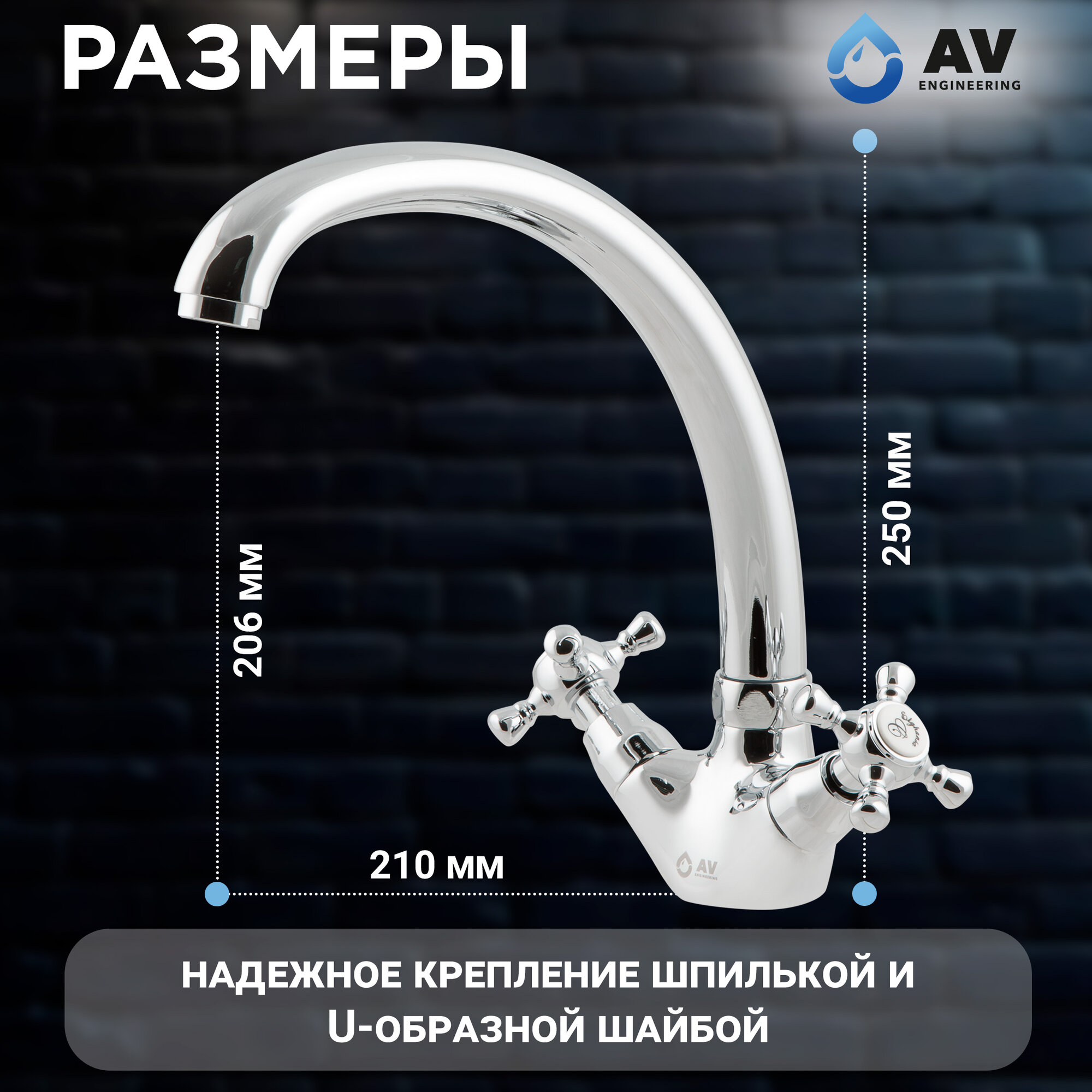 Смеситель для кухни, раковины с поворотным высоким изливом, аэратор AV Engineering (AVQNM4-B331-289)