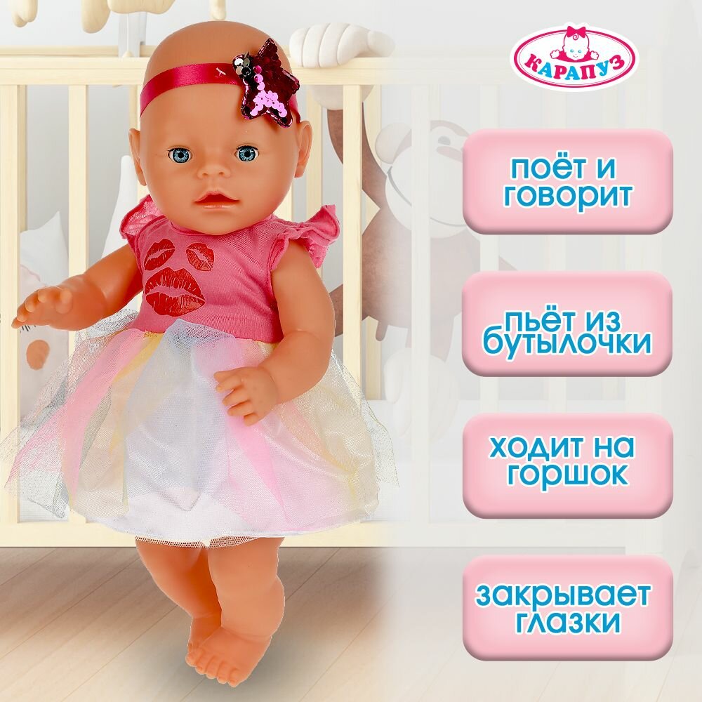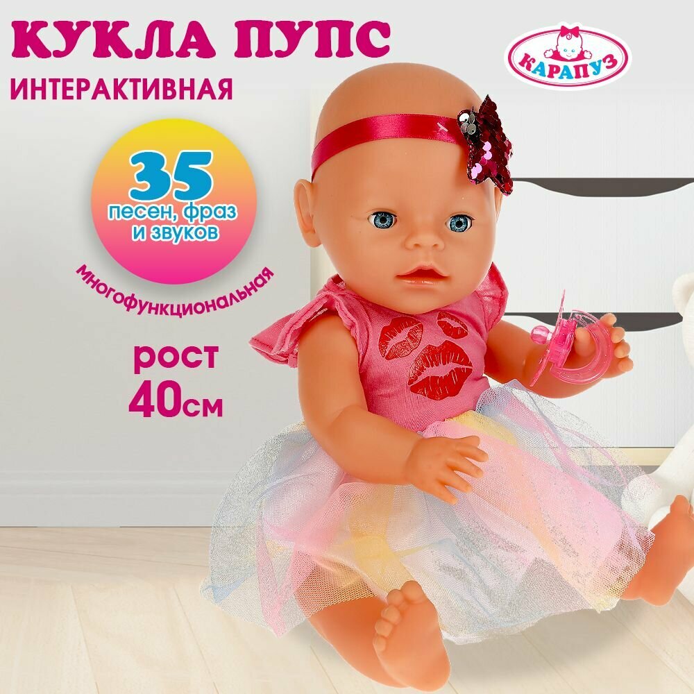 Карапуз Кукла Пупс озвученный Мила, 40 см, поёт песенки, пьет, писает, закрывает глазки
