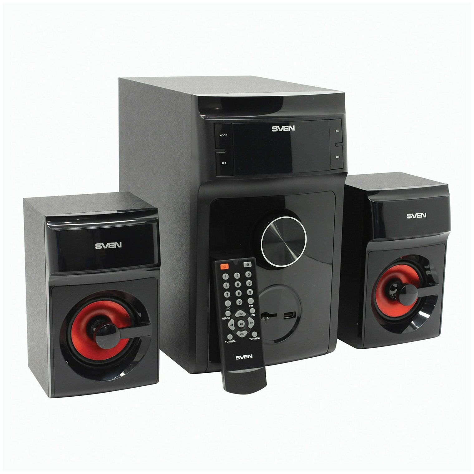 Колонки 2.1 SVEN MS -302, черный (40W, FM-тюнер, USB/SD, дисплей, ПДУ) (SV-013554)