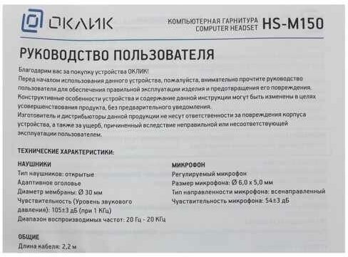 Наушники с микрофоном Oklick HS-M150 Black Black