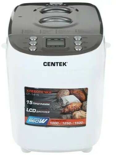 Хлебопечь Centek CT-1415 (бел/сталь) 1500 г большой объём, 860Вт, 15 программ, таймер, LCD