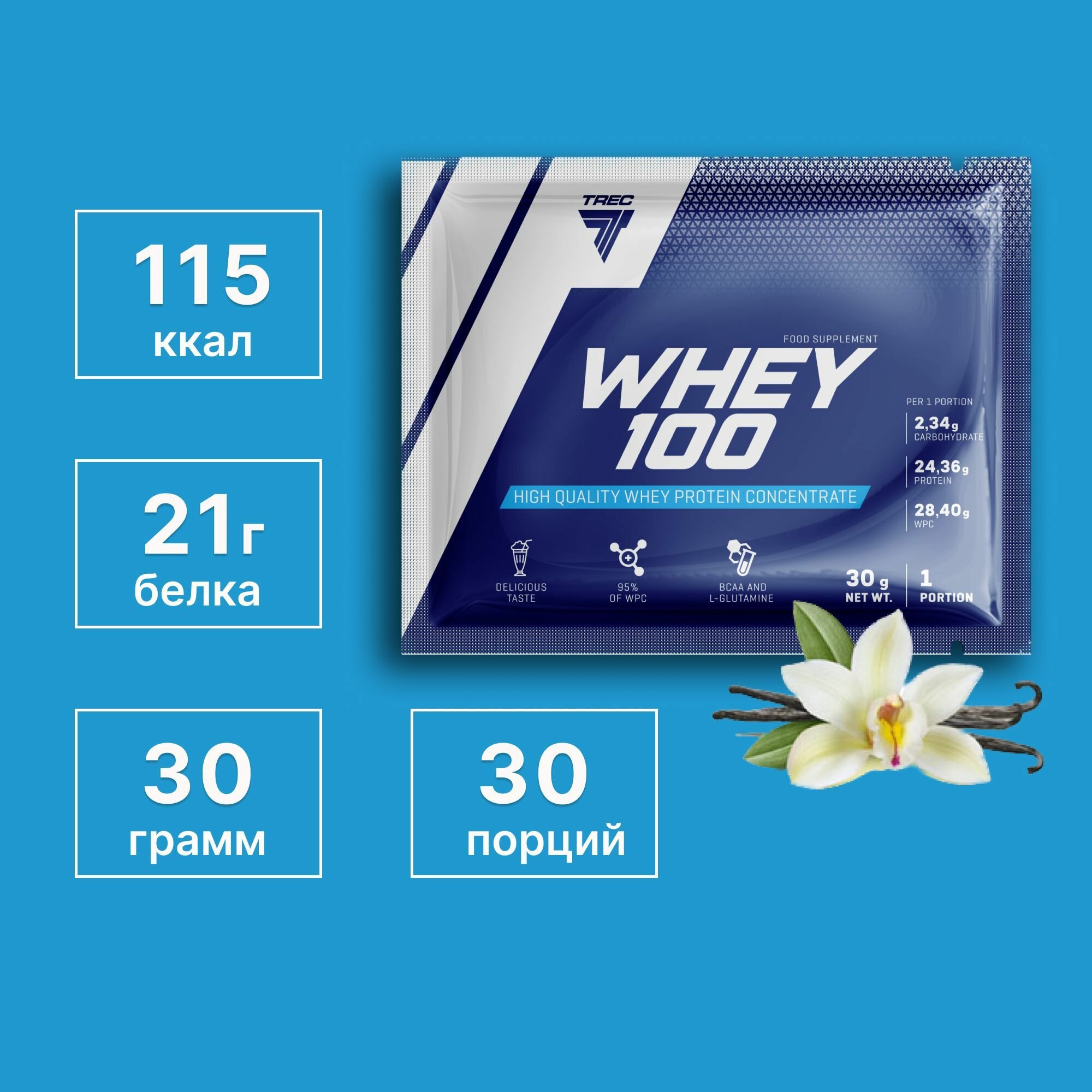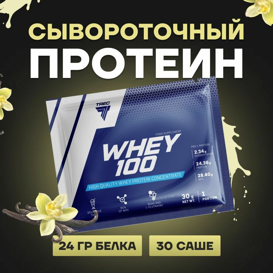 Trec Nutrition Протеин сывороточный 30 шт по 30 гр, для набора мышечной массы, Trec Nutrition Whey 100, вкус ваниль протеины в Курчатов