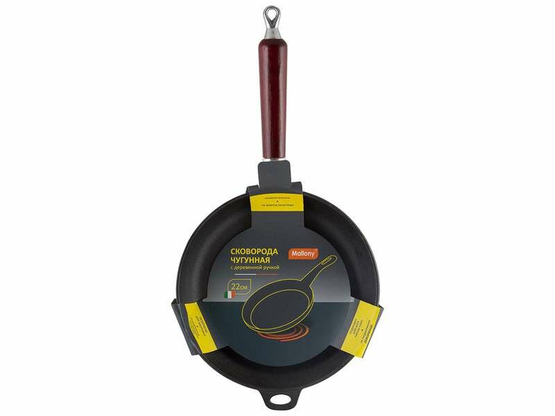 Сковорода Mallony чугунная 22 см, деревянная ручка