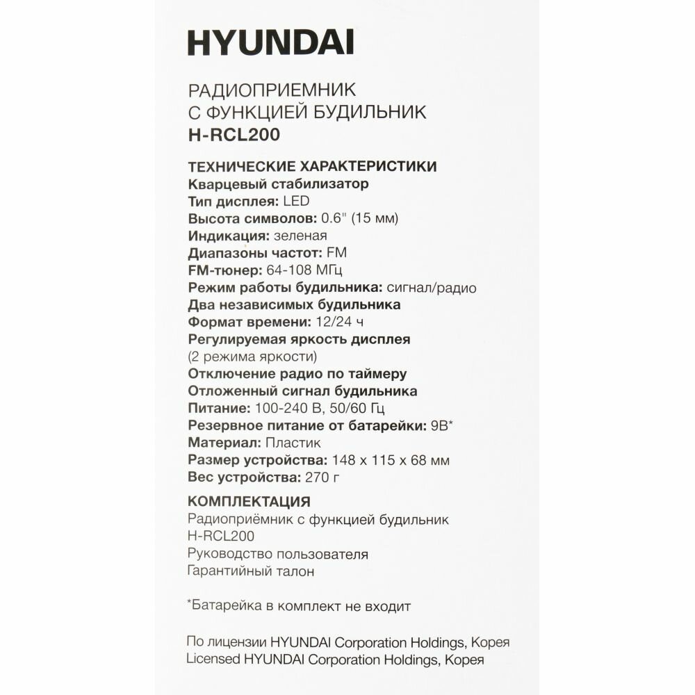 Радио-часы Hyundai H-RCL200