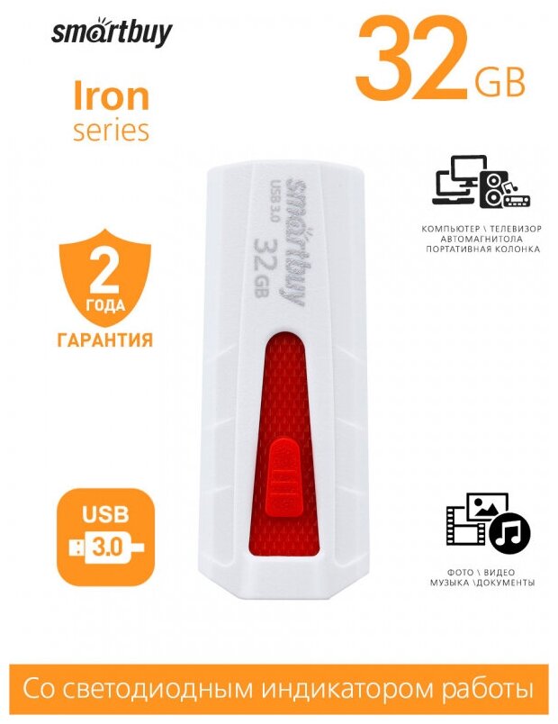 Флеш-карта SmartBuy 128 гб Iron USB 3,0, бело-красная (SB128GBIR-W3)