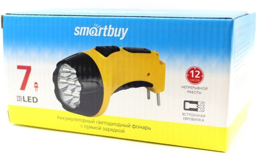 Фонарь Smartbuy SBF-86-Y, аккумуляторный, светодиодный, 7 LED, прямая зарядка от сети, желтый ( Артикул 265957 )