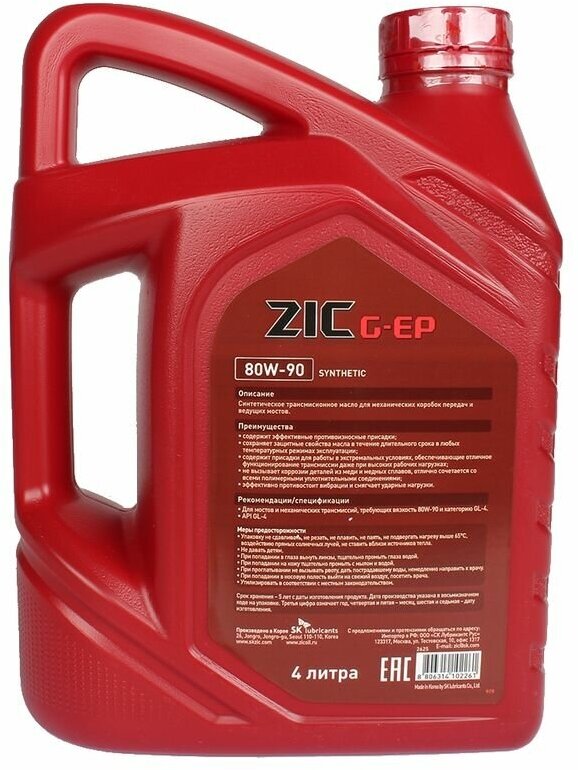 Масло Трансмиссионное Zic G-Ep 80w90 Синтетическое 4 Л 162625 Zic арт. 162625