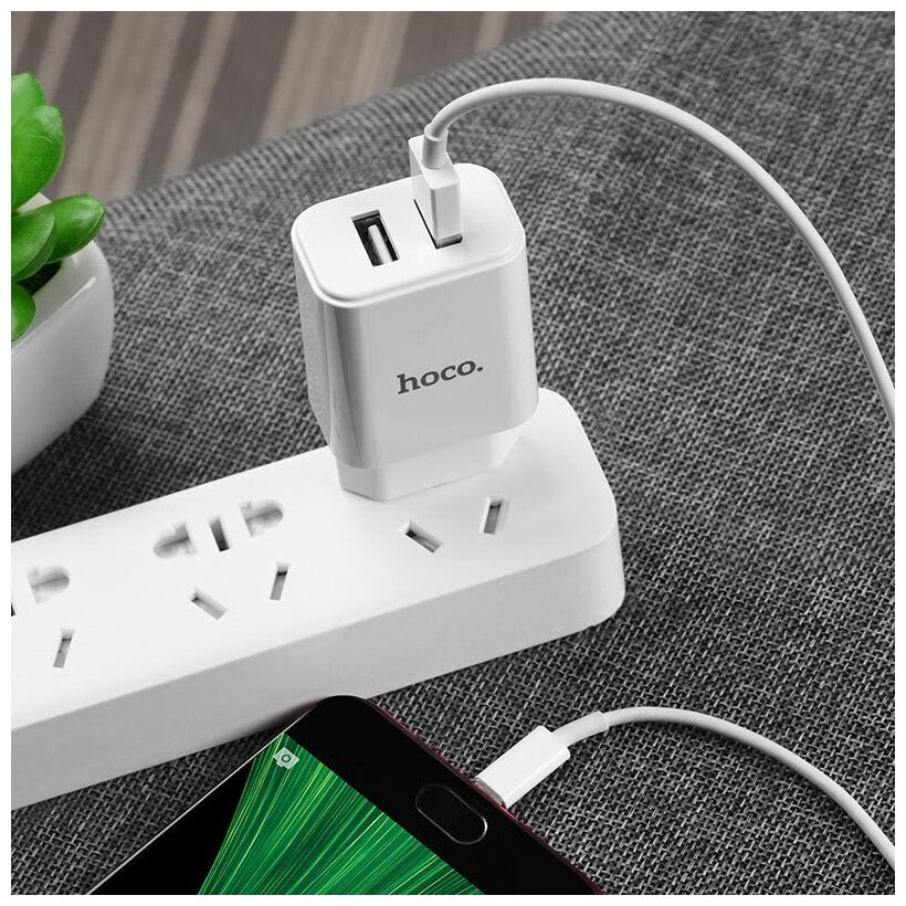 Hoco СЗУ, 2 USB 2.1A (C62A), HOCO, Micro, Умная зарядка, белый зарядки для гаджетов в Курчатов