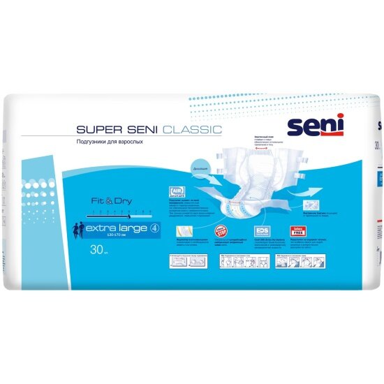 Seni Подгузники для взрослых Super Classic, 130-170 см., XL (30 шт.)