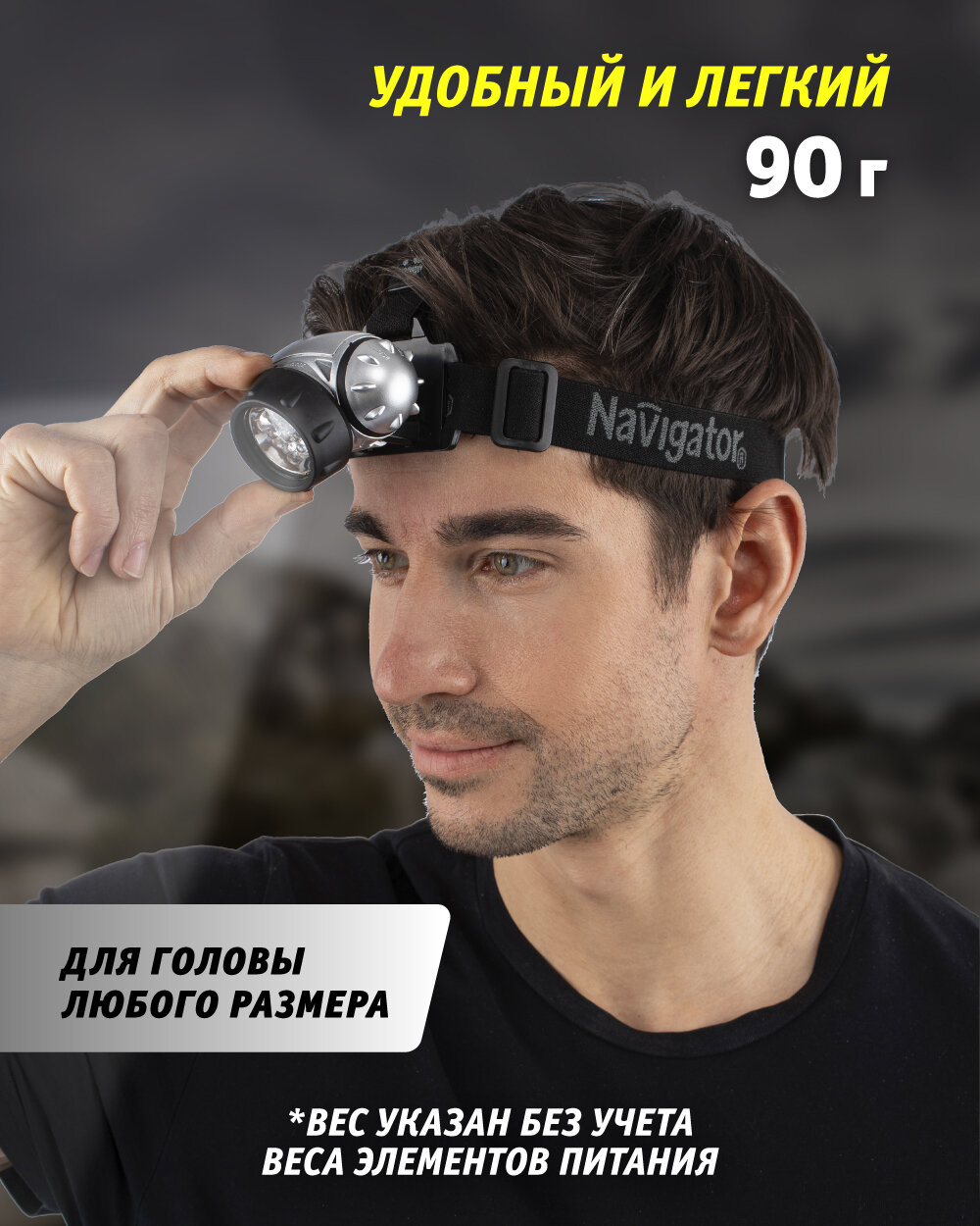 Фонарь налобный Navigator 94 916 NPT-H04, работает от батареек 3ААА
