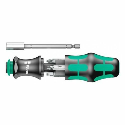 Отвёртка со сменными битами Wera 136504, 8 предм., черный/зеленый