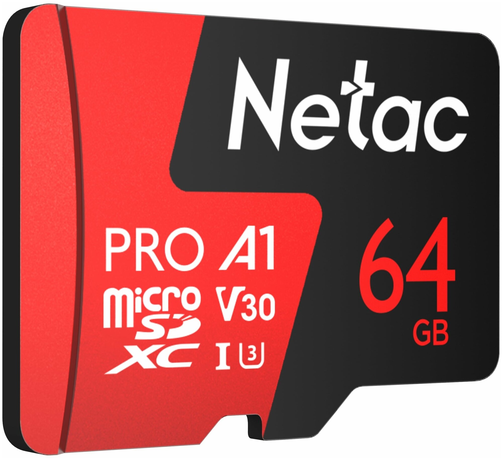 Карта памяти Netac microSDXC 64 ГБ Class 10, V30, A1, UHS-I U3, R 100 МБ/с, 1 шт., черный/красный