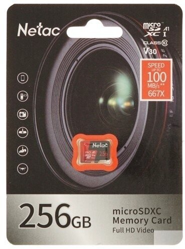 Карта памяти Netac P500 PRO MicroSDXC 256Gb Сlass 10 UHS-I 100MB/s + ADP (NT02P500PRO-256G-R)