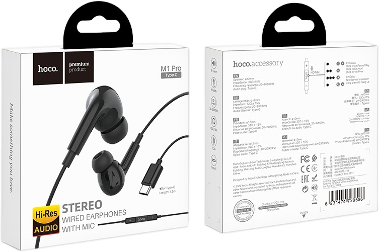 Цена для г. Курчатов. Наушники Hoco M1 Pro, проводные, вакуумные, микрофон, Type-C, 1.2 м, черные -Вес: 41 г. -Фасовка: 1 шт -Тип индивидуальной упаковки: Цветная картонная коробка -Длина упаковки: 12 -Высота упаковки: 2.5 -Ширина упаковки: 12 -Объем упаковки: 0.360 -Объем продукта: 0.5194 -Объем бокса: 15.582 -Ширина: 1.5 -Высота: 1.5 -Габариты товара: 11 см × 1,5 см × 1,5 см -Материал: Металл, пластик -Цвет: Чёрный -Длина провода, м: 1.2 -Сопротивление, Ом: 32 -Чувствительность, дБ: 116 -Подключение наушников: Проводное -Тип. Магазины в городе Курчатов смотрите ниже