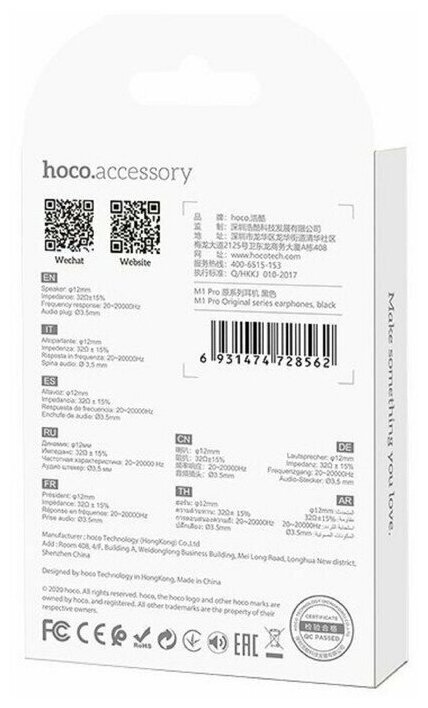 Наушники HOCO M1 Pro Original Series вакумные, черный