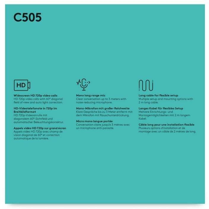 Logitech Webcam HD C505, MP, 1280x720, [960-001364] .