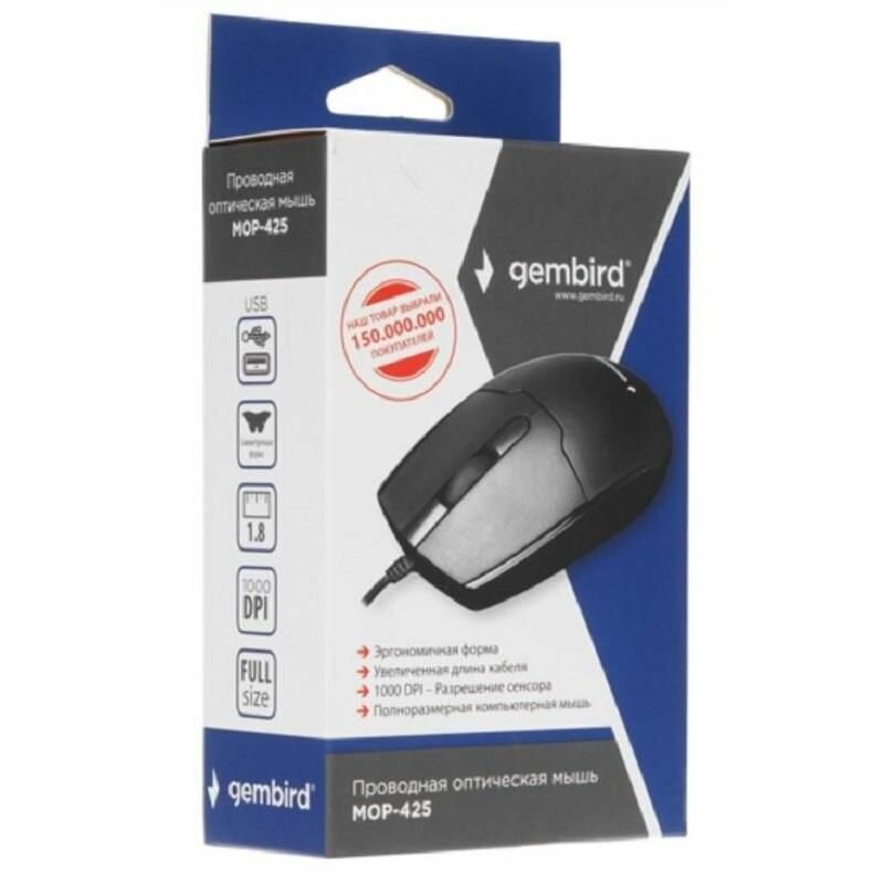 Мышь компьютерная Gembird MOP-425, USB, черный, 2кн.+колесо, 1000 DPI, 1.8м
