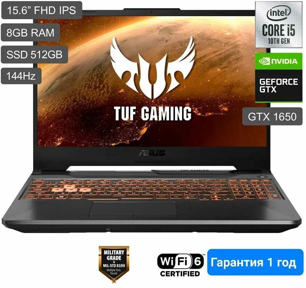 Asus Ноутбук ASUS TUF Gaming F15 FX506LHB-HN323W 15.6 (1920x1080) IPS 144Гц/Intel Core i5-10300H/8ГБ DDR4/512ГБ SSD/GeForce GTX 1650 4ГБ/Windows 11 Home че ноутбуки в Курчатов