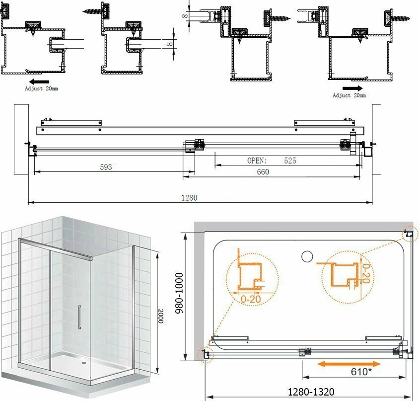 Цена для г. Курчатов. Монтаж: пристенный в угол Возможная установка: на поддон, на пол Высота: 2000 мм Форма: прямоугольная Ориентация: универсальная Конструкция двери: раздвижная Исполнение полотна двери: прозрачное (C) Количество секций двери: 1 Толщина полотна двери: 8 мм Цвет профиля: хром Материал полотна двери: закаленное стекло, стандарт En12150-1:2000 Материал профиля: анодированный алюминий, стандарт Din17611 2007 Регулировка ширины: предусмотрена за счет боковых профилей Крепления полотна двери: двойные подшипниковые. Магазины в городе Курчатов смотрите ниже