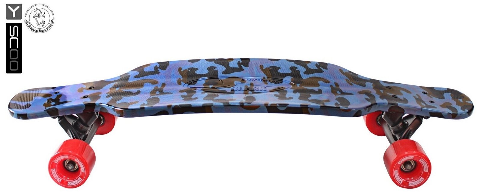 Скейтборд Y-SCOO Longboard Shark TIR 31 пластик 79 с сумкой Blue Army BLUE/red