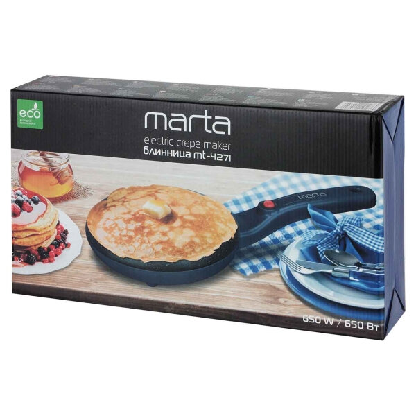 Цена для г. Курчатов. Электроблинница Marta MT-4271 – удобная альтернатива сковородам. От вас больше не требуется наливать тесто, а затем пытаться распределить его максимально равномерно. Просто окуните прибор в заранее приготовленную смесь на пару секунд, переверните и дождитесь подрумянивания. самые тонкие При традиционном способе жарки блины не всегда получаются ажурными и одинаковой формы, первый же вообще обычно выходит комом. Именно данную проблему призвана решить Marta MT-4271. Магазины в городе Курчатов смотрите ниже