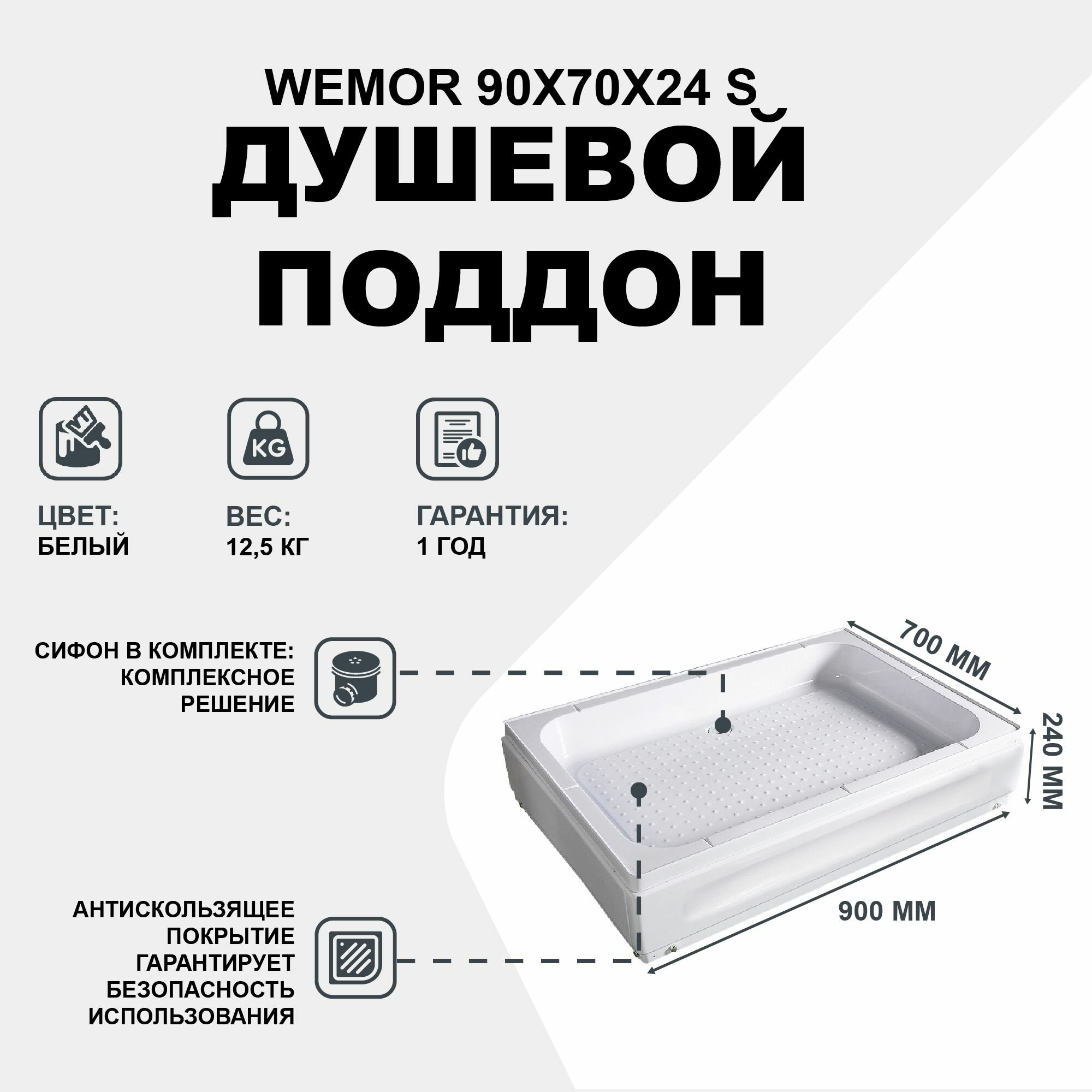 Акриловый поддон 90x70x24 см Wemor 90/70/24 S