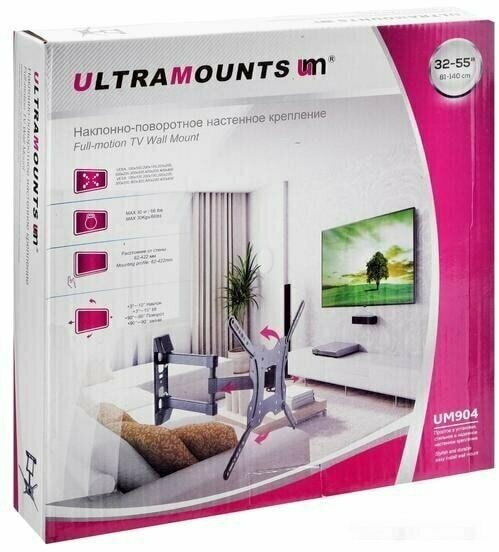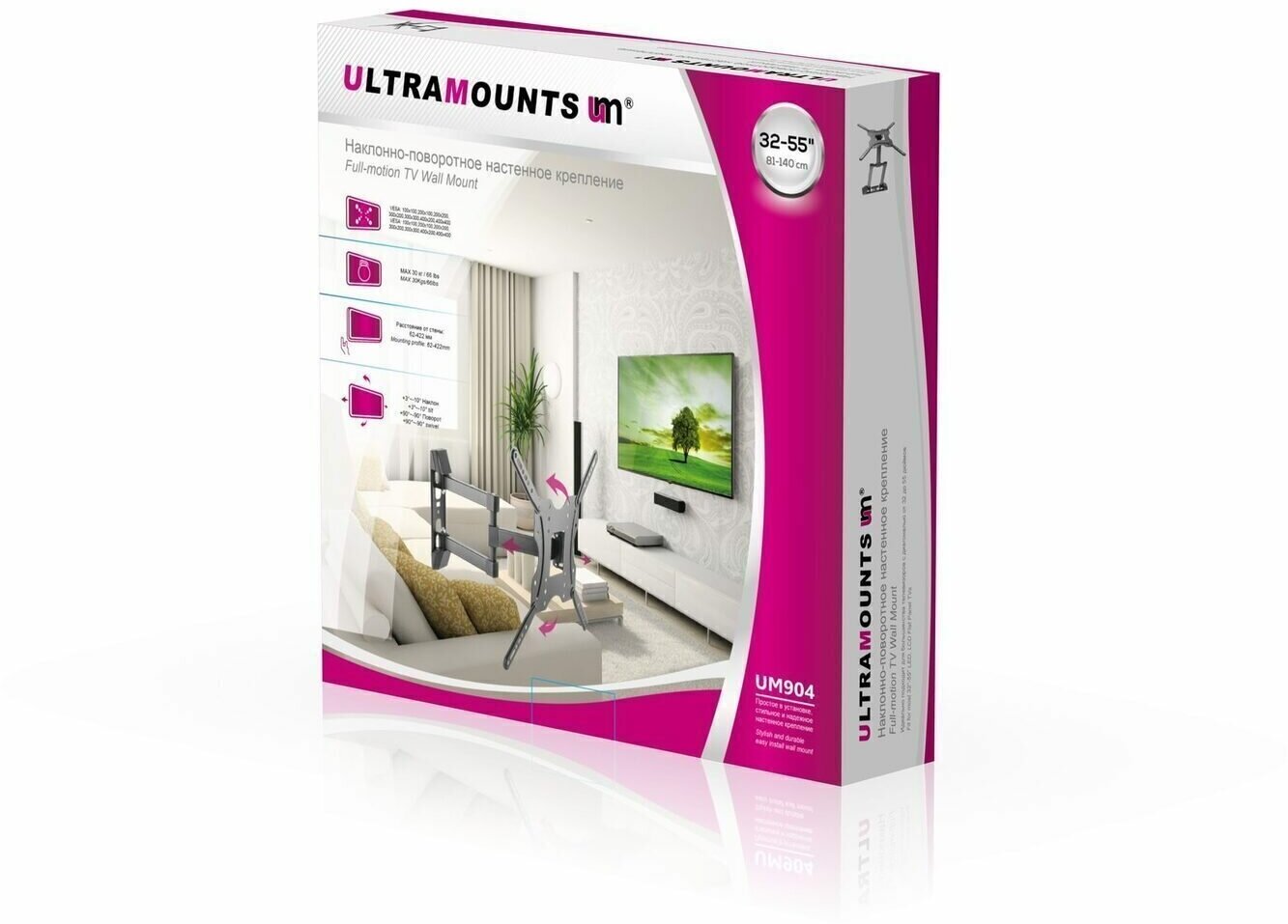 Кронштейн для телевизора ULTRAMOUNTS UM 904, 32-55", настенный, поворотно-выдвижной и наклонный, черный