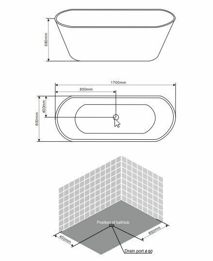 Акриловая ванна Grossman GR-1501 80х170 отдельностоящая