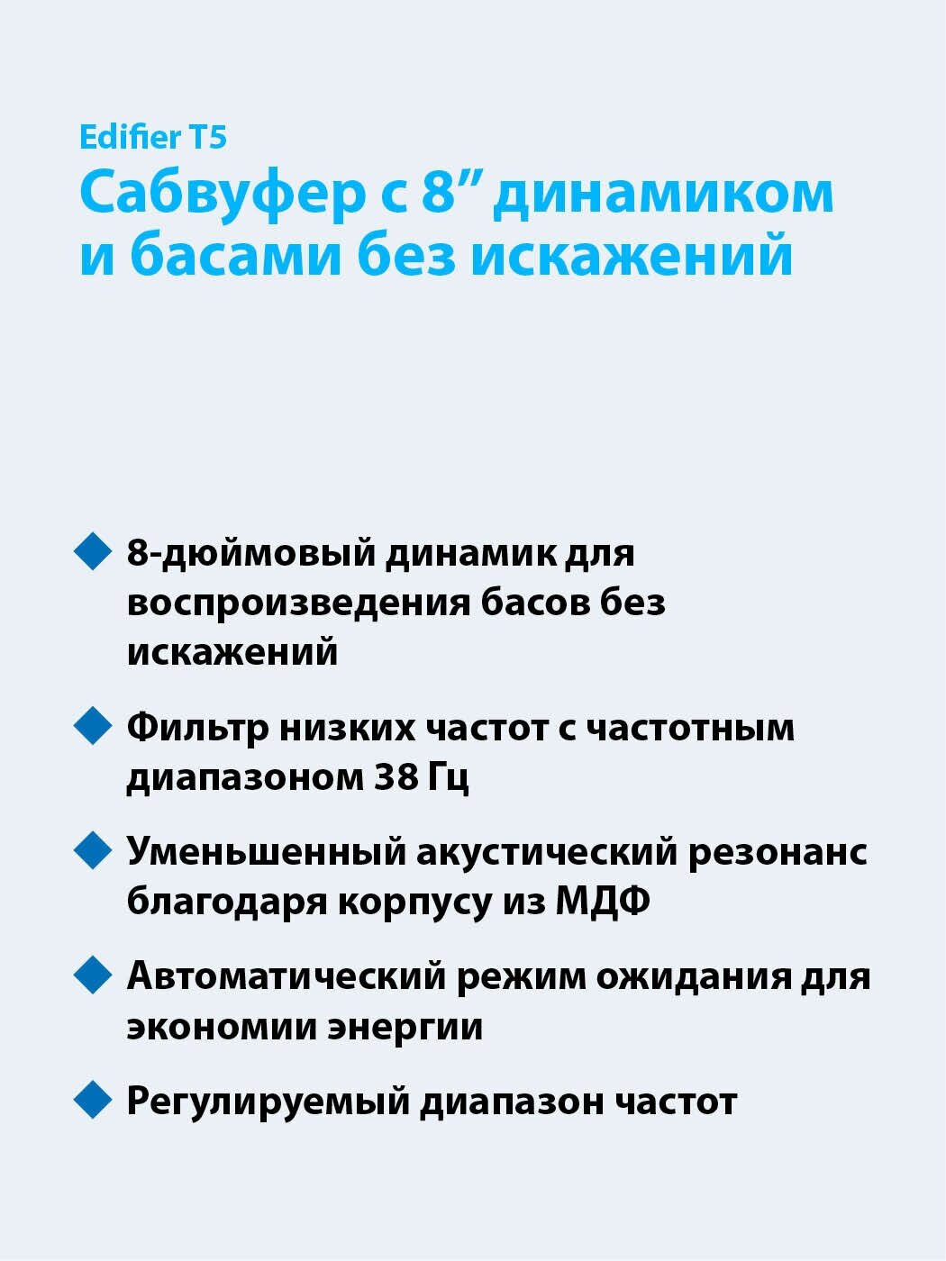 Сабвуфер Edifier T5 назначение: для домашнего кинотеатра, 1 колонка, черный