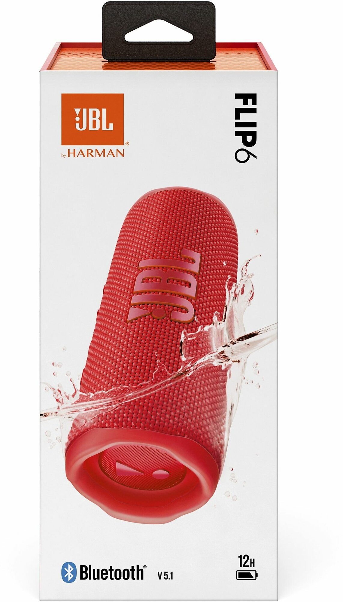JBL Портативная акустика JBL Flip 6 красный Bluetooth 5.1, время воспроизведения музыки 12 ч, емкость аккумулятора 4800 mAh, время заряда 2,5 ч портативные колонки в Курчатов