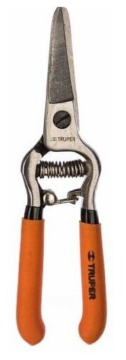 Секатор садовый TRUPER / Трипер 18456 с тонким лезвием углеродистая сталь SAE пластиковая рукоятка оранжевый 152мм / сучкорез