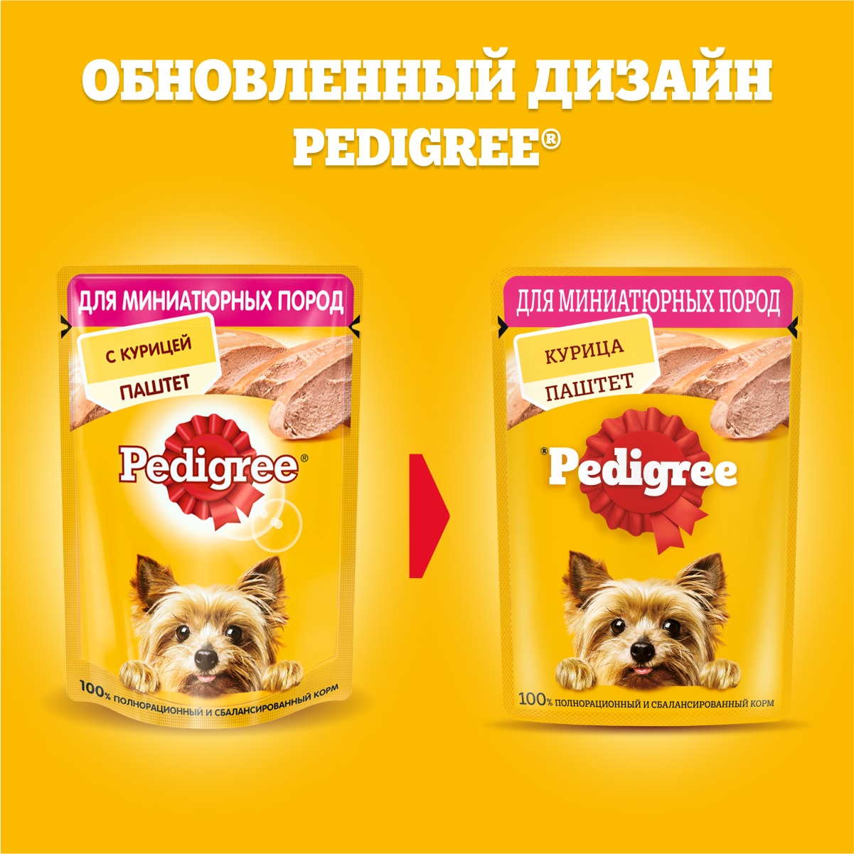 Влажный корм Pedigree для взрослых собак миниатюрных пород, паштет с курицей, 80г х 24шт