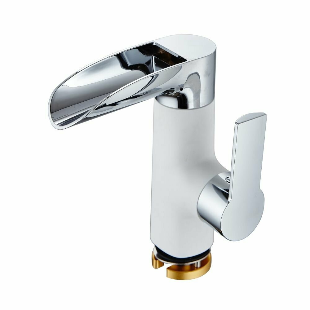 Смеситель для раковины в ванную комнату с каскадным изливом OneLife P08-921w, белый, хром