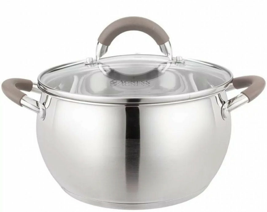 Кастрюля нержавеющая сталь для индукционных плит с крышкой agness 3,3 л. 20x11.5 см