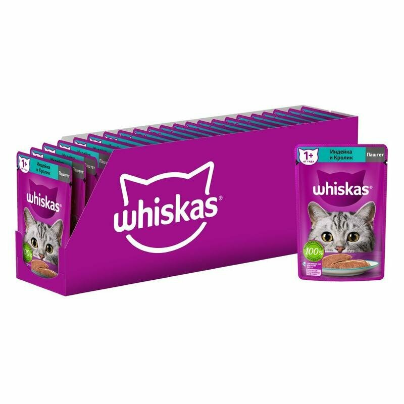 Влажный корм WHISKAS® для кошек, паштет с индейкой и кроликом, 75г*24шт